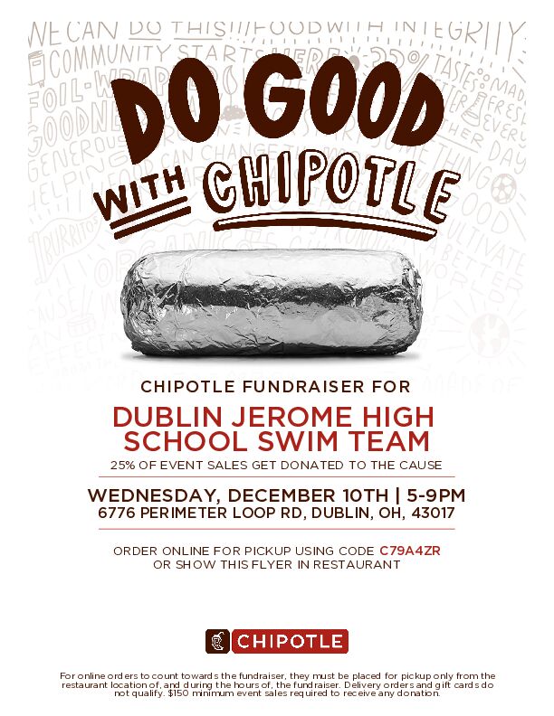Support the swim team at Chipolte at Perimeter and make sure you let your friends know, and share the flier. Code for ordering online is: C79A4ZR |